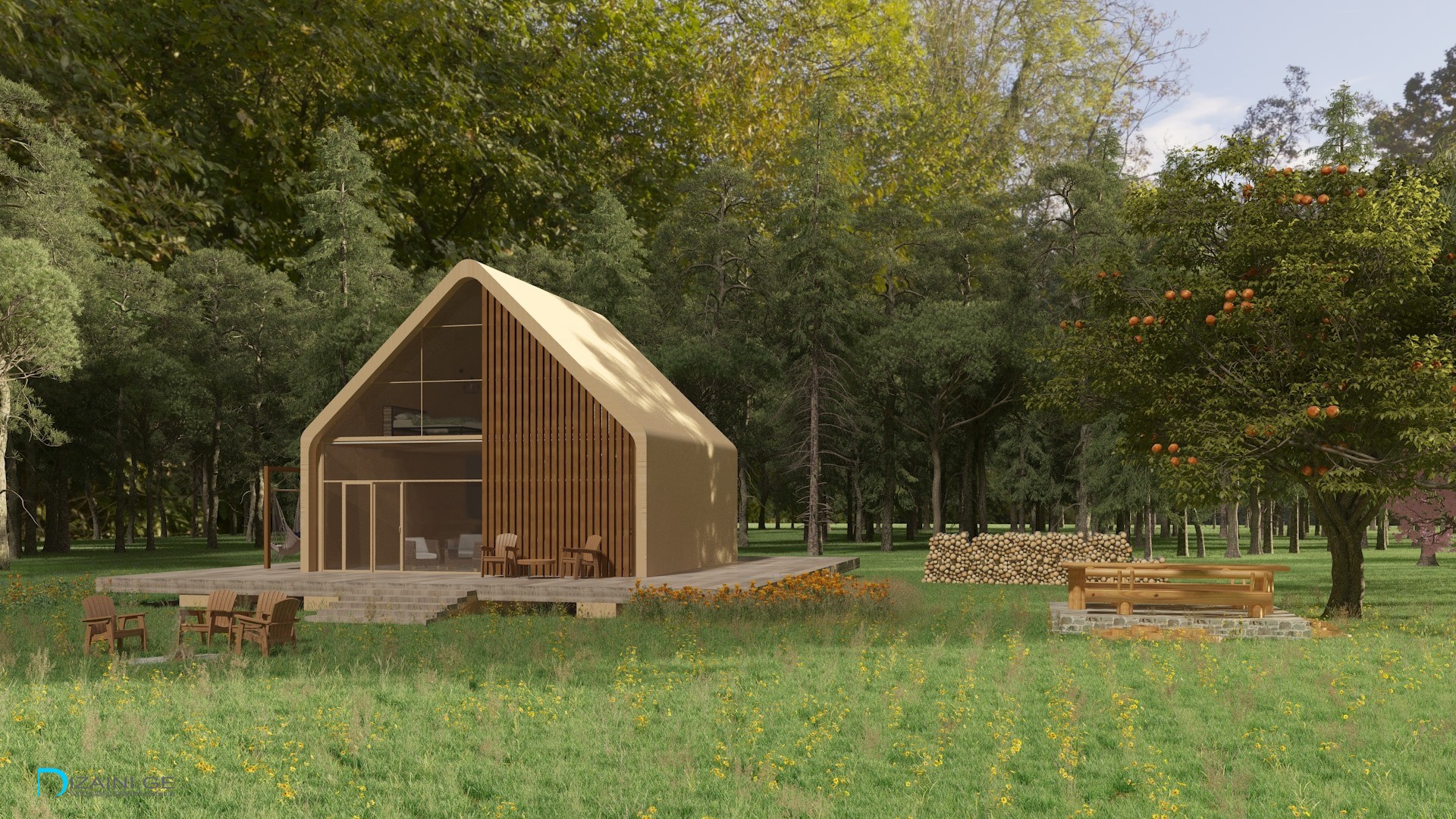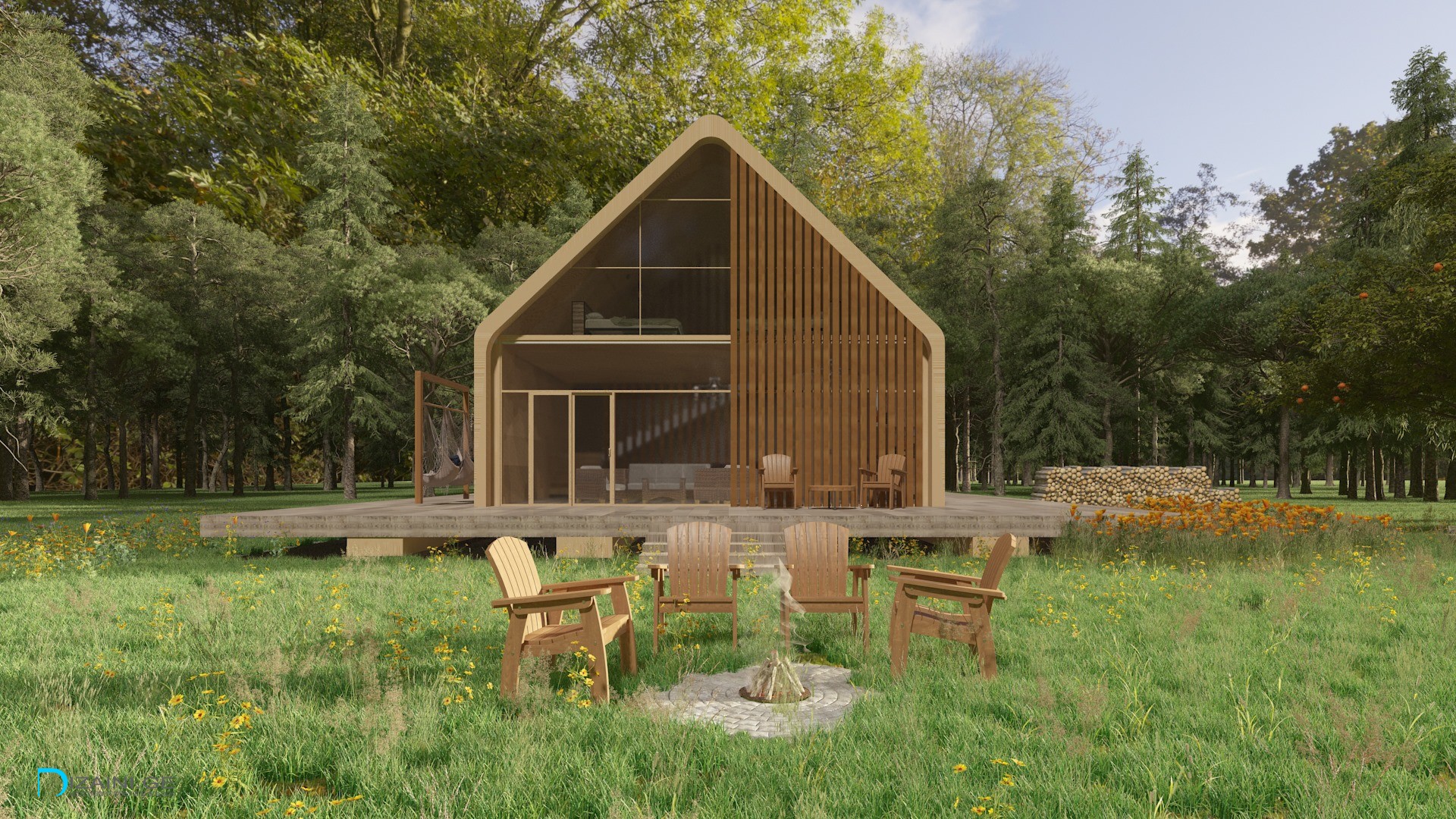 კოტეჯის დიზაინი 🏡 არქიტექტურა რომელიც ჰარმონიულად ერწყმის ბუნებას და გარემოს. 💚 ◼️